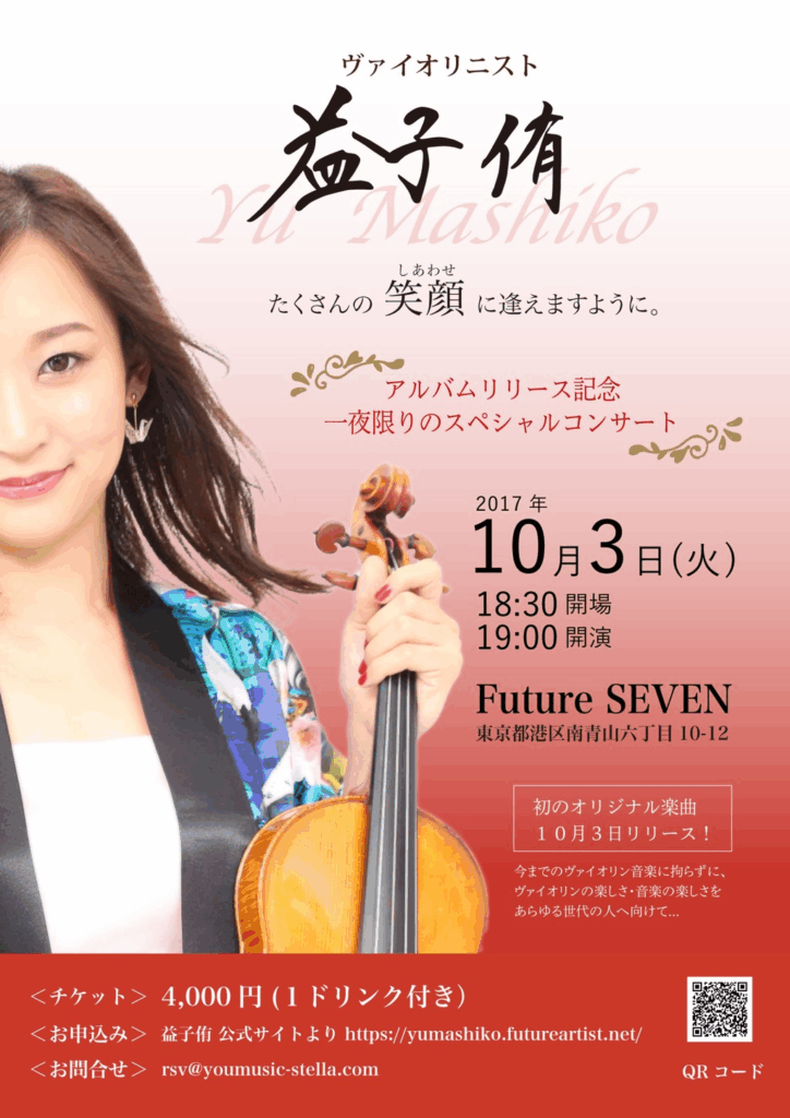 ヴァイオリニスト 益子侑。アルバムリリース記念。一夜限りのスペシャルコンサート