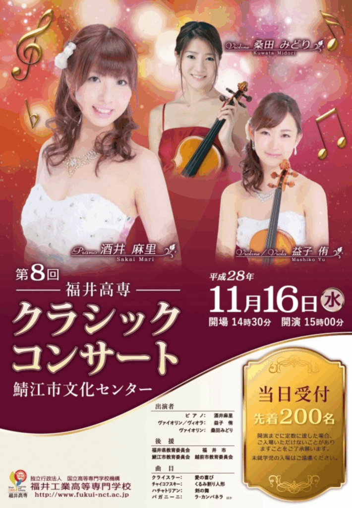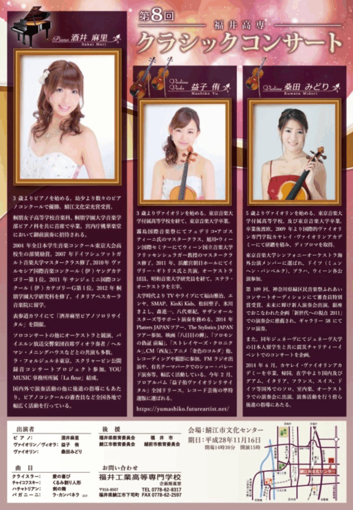 クラシックコンサート in 鯖江。この日はヴィオラも演奏します。
